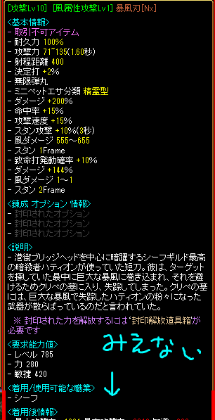 とはいえ折角作ったものなので、この後風属性ダメージをLv10まで上げてから再度銀行にしまっておきまんた
