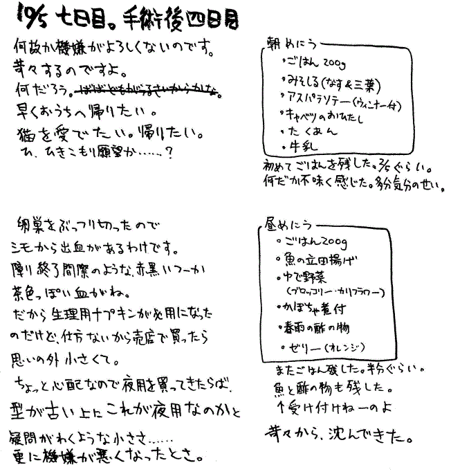 この日は売店に行くのと食事の時間と絵日記描く以外の時間はずっと寝ていました
