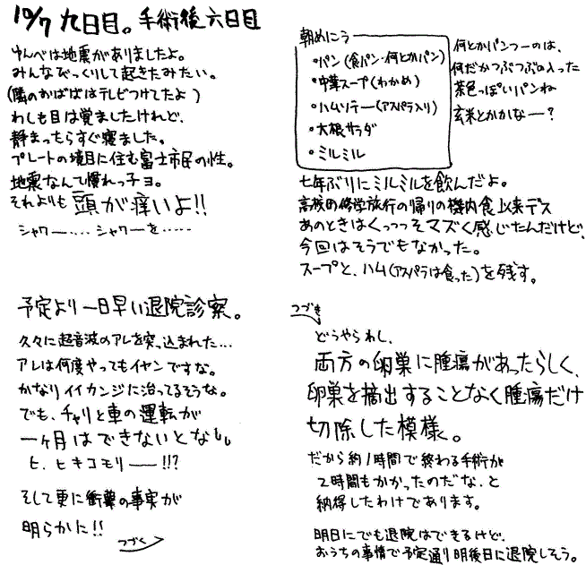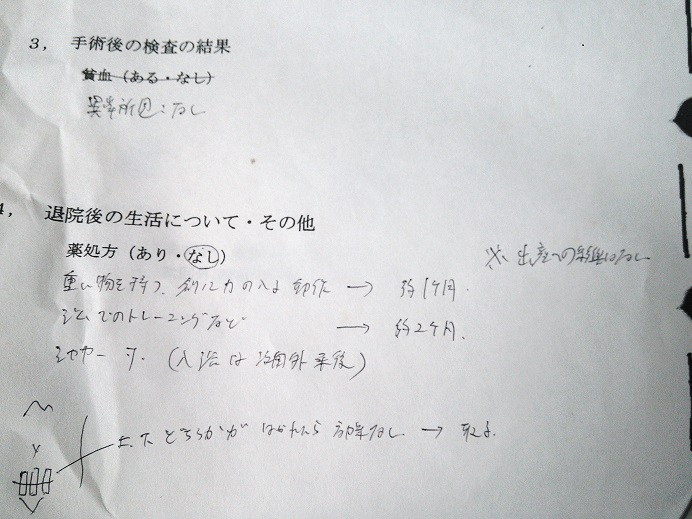 「昨夜の地震? それより今日からシャワー可!」と逸る気持ちを抑えつつ、朝食後に予定より早い退院診察をば