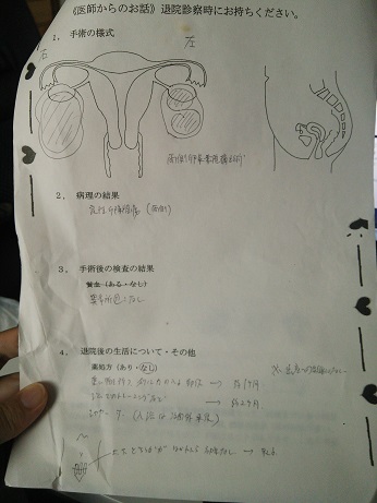 これは卵巣ごと摘出するわけには……ということで、両方の卵巣を残しつつ、腫瘍だけを切除したのだそうです