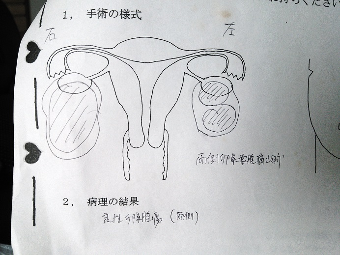 いざ開腹してみたら両方の卵巣にそれぞれ良性腫瘍がくっついていたとのこと